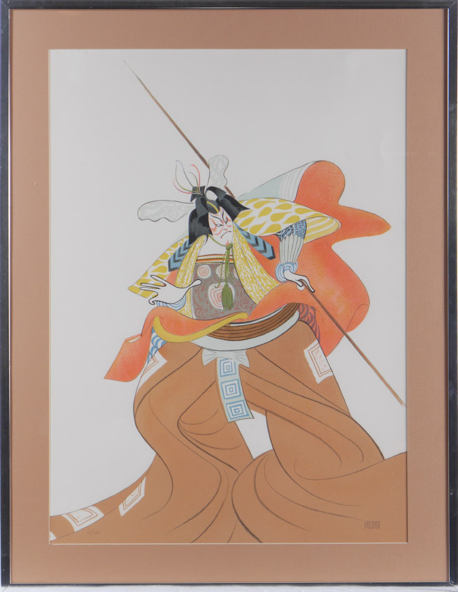 HIRSCHFELD, Albert, (American, 1903-2003): Samurai, Lithograph, sight size 29'' x 21'', pencil signed lower right, numbered 78 of 275 lower left, metal frame, 25'' x 27''.