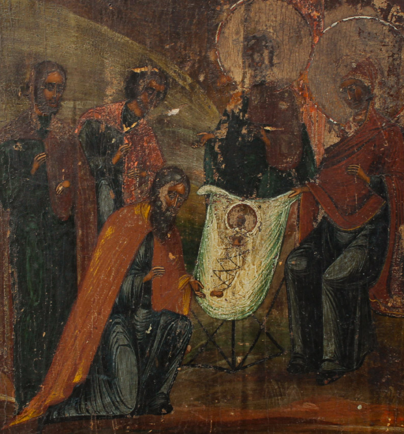 LATE 18TH/EARLY 19TH CENTURY RUSSIAN ICON OF THE CRUCIFIXION: Oil/Wood, 13 7/8'' x 12'', this panel has been cradled to prevent the bowing that exists, ''From the Collection of Dr. Carl M. Cutler, Jr.''