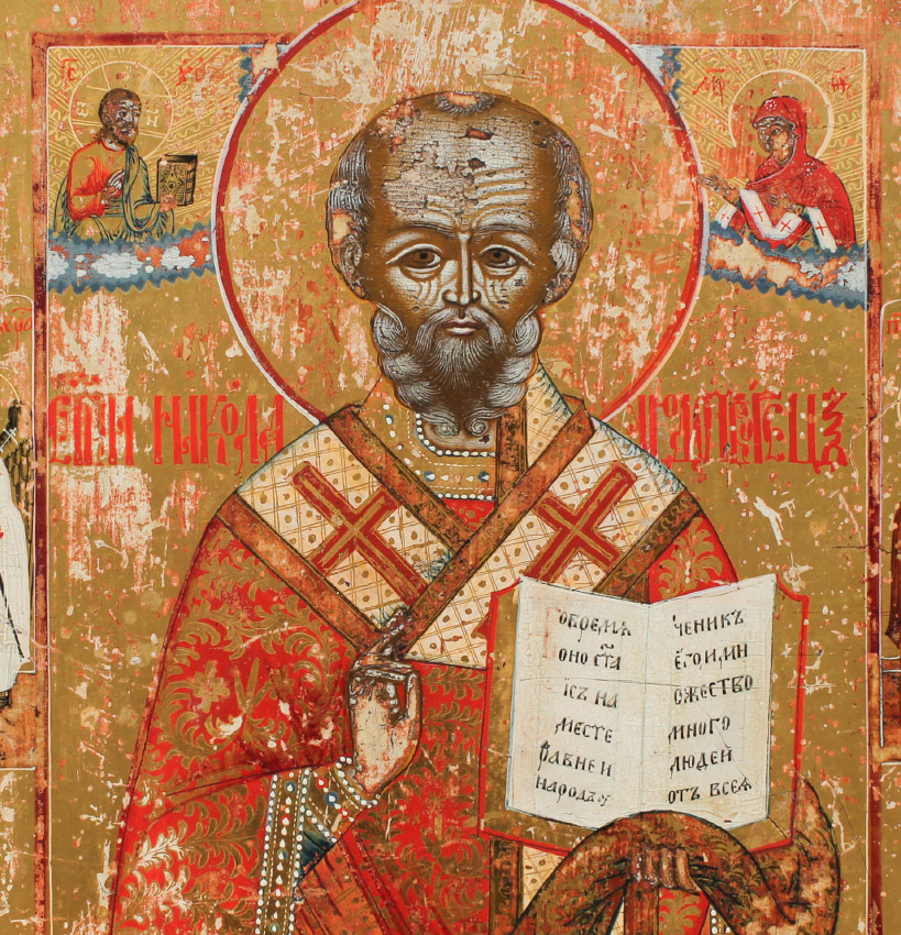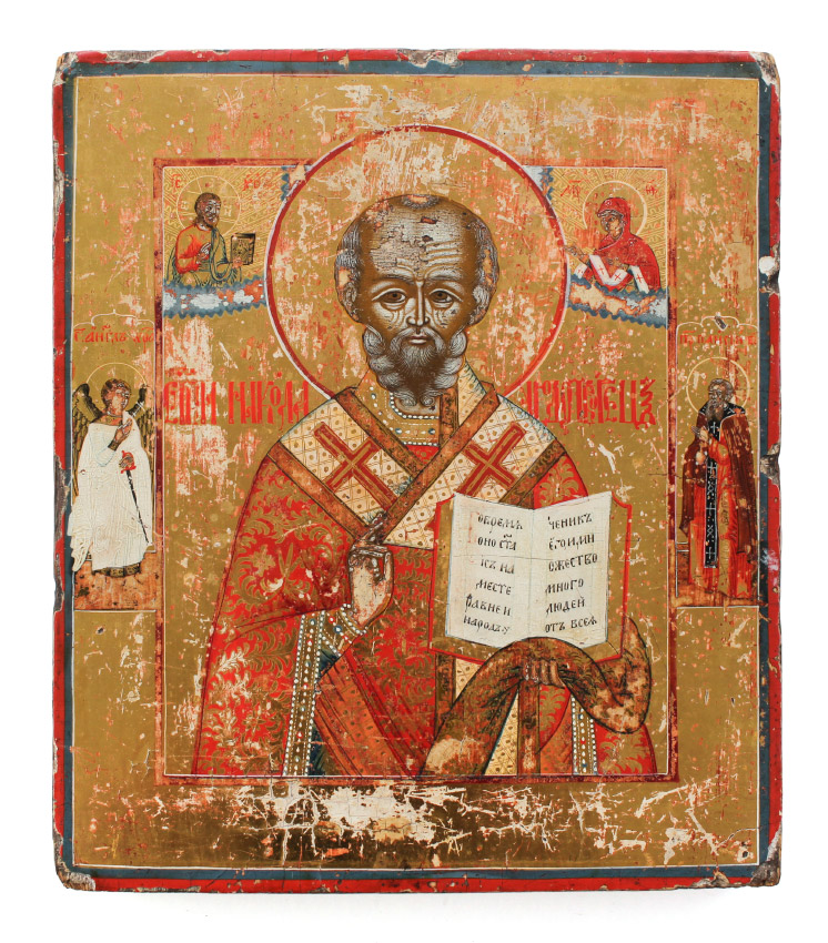 19TH CENTURY RUSSIAN ICON OF SAINT NICHOLS: Oil/Wood Panel, 10 1/2'' x 9'', ''From the Collection of Dr. Carl M. Cutler, Jr.''