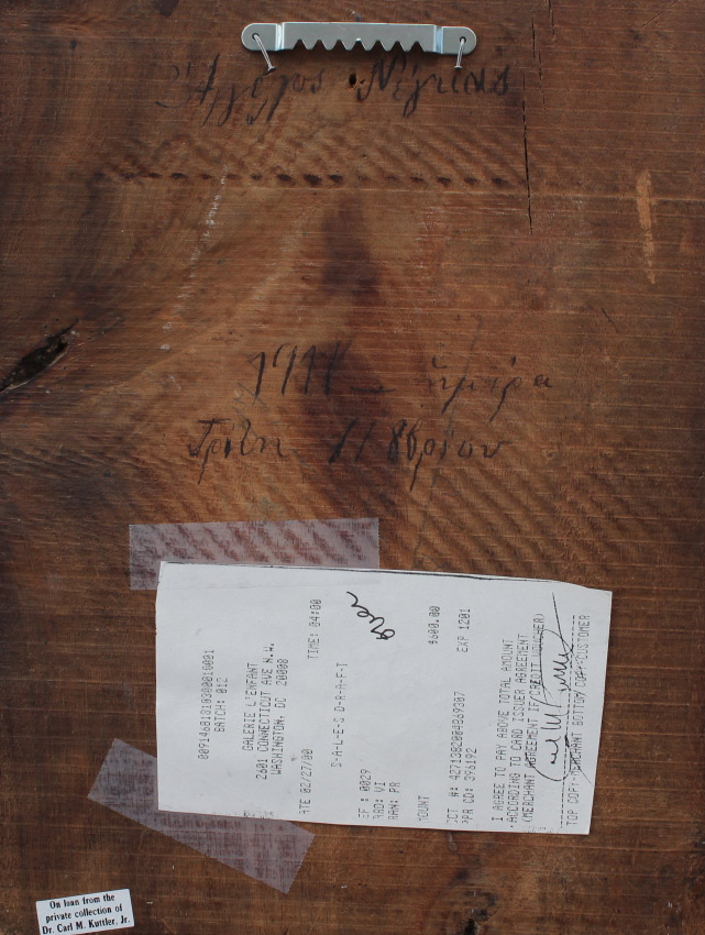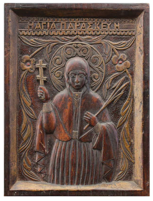 CARVED WOODEN GREEK ICON: Circa 1911, 11'' x 8 1/4''.