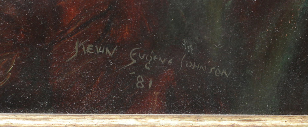 JOHNSON, Kevin Eugene, (American, 1954- ): Sorcerer/Warrior, Oil/Canvas, 40'' x 29 3/4'', signed lower left, dated '81, framed, 46'' x 36''.