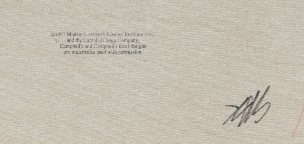 KAUFMAN, Steve, (American, 1960-2010): Campbell's Soup Montage, Embellished Serigraph/Canvas, 39 1/2'' x 48'', signed verso, stencil from Martin Lawrence Limited Editions with Campbell's Soup authorization dated 1997, unframed.