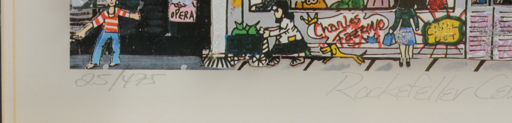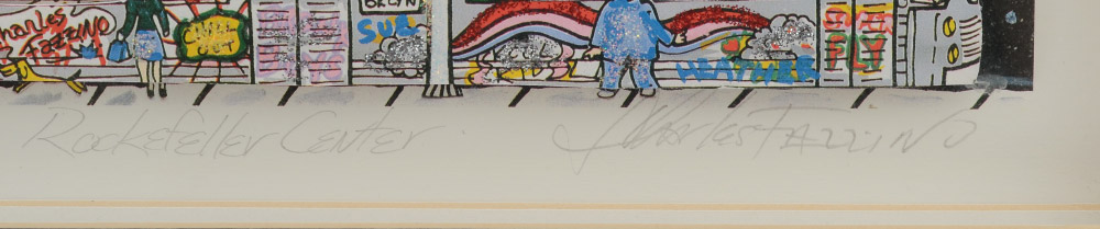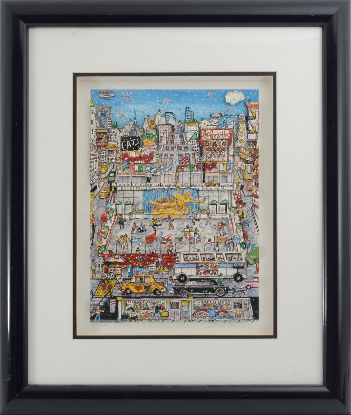 FAZZINO, Charles, (American, 1955- ): ''Rockefeller Center'', 3D Lithograph, sight size 14 1/2'' x 10 1/2'', pencil signed lower right, titled lower margin and numbered 25 of 475, encased in custom black lacquer frame, 23'' x 20''.