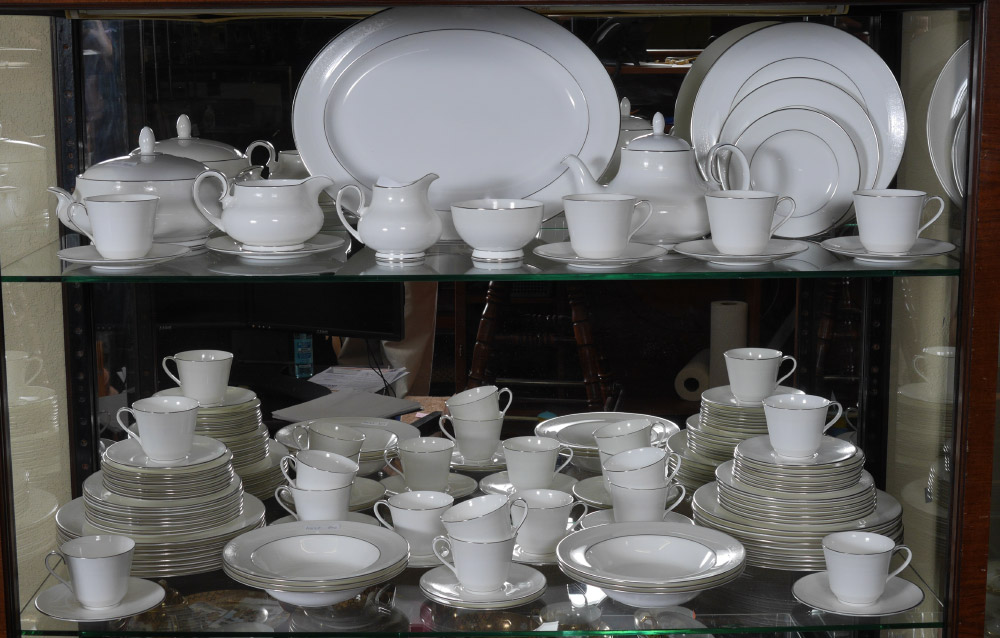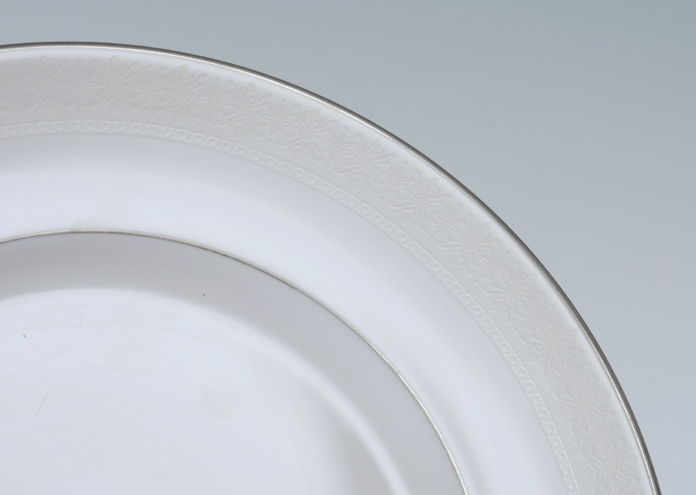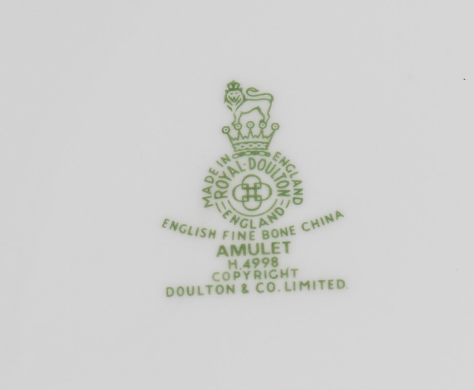 ROYAL DOULTON ''AMULET'' FINE CHINA SERVICE FOR 16: Approx. 94 pieces to include: 16 each, dinner plates (10 1/2''), salad plates, bread plates, cups and saucers. Also 6 soup bowls, covered vegetable, creamer, open sugar, gravy with underplate, teapot and the 16'' platter.