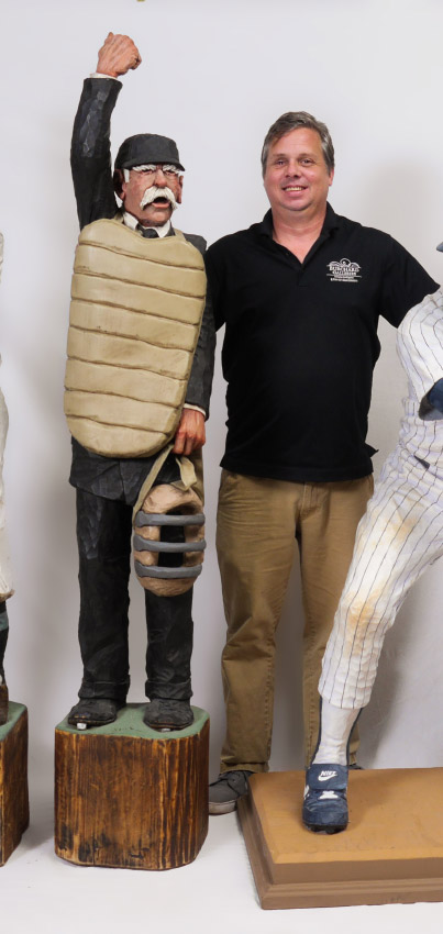 DOWD, Jack, (American, 1938- ): ''The Umpire'', Carved and Painted Basswood, 75'' h., signed on the base.
