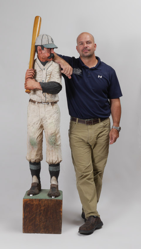 DOWD, Jack, (American, 1938- ): Old Time Baseball Player, Carved and Painted Basswood, 74 1/4'' h., signed on the pedestal.