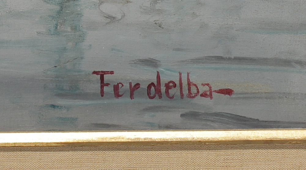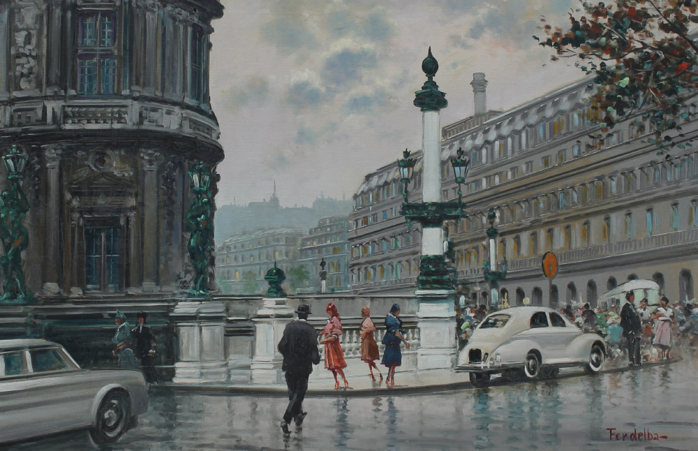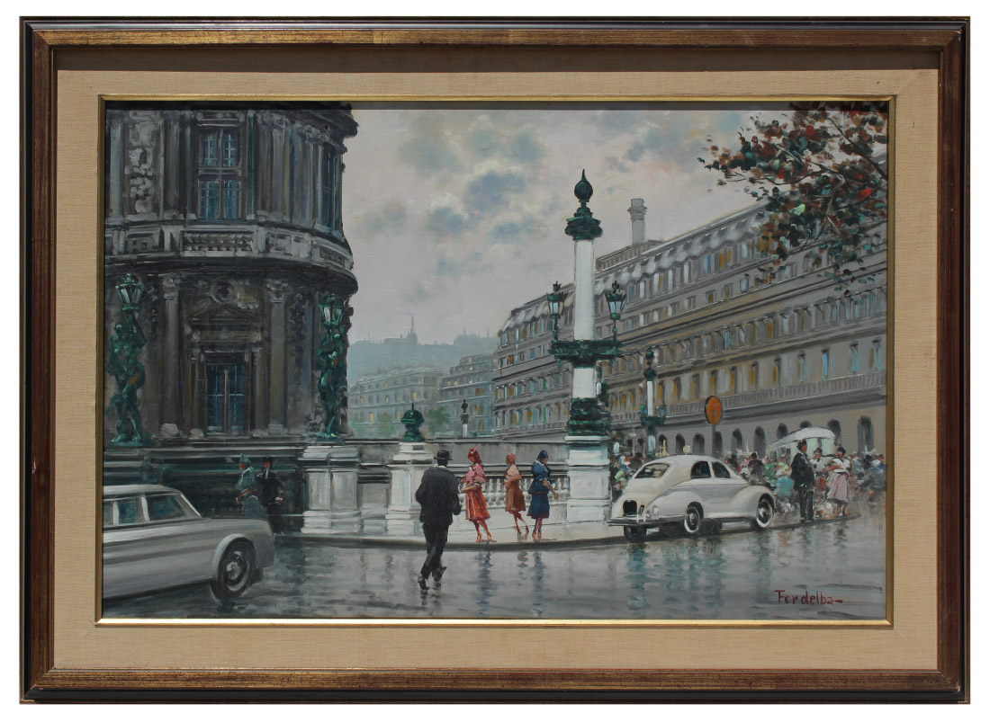 FERDELBA, Mario, (European, 20th C.): Parisian Street Scene, Oil/Canvas, 24'' x 36'', signed lower right, framed, 32'' x 44''.