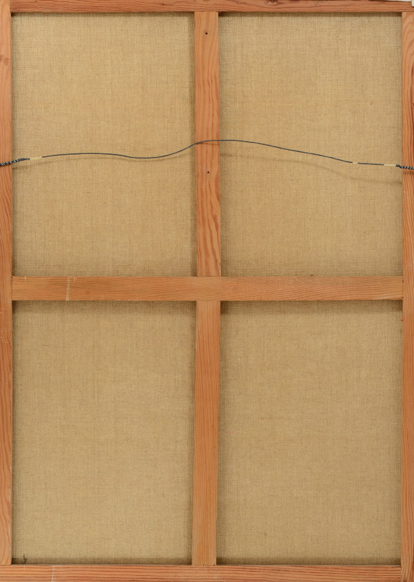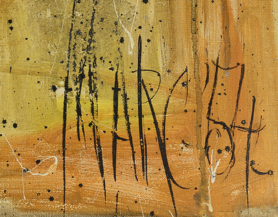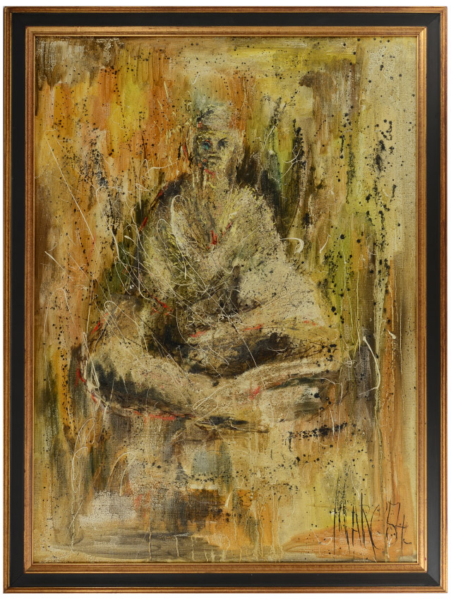 KING, Mark, (American, 1931- ): Abstract Seated Buddha, Oil/Canvas, sight size 39 1/2'' x 28 3/4'', signed lower right and dated '54, gilded and ebonized frame, 43 1/2'' x 33 1/2'', thick impasto in some areas.