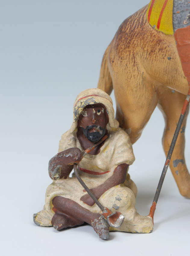TWO COLD PAINTED MINIATURES: Cockatoo is bronze, marked Austria on the base, 3 1/2'' x 3 1/2''; Arab with Camel is white metal, measures 4 1/2'' x 4 1/2''.