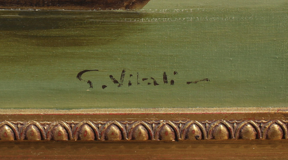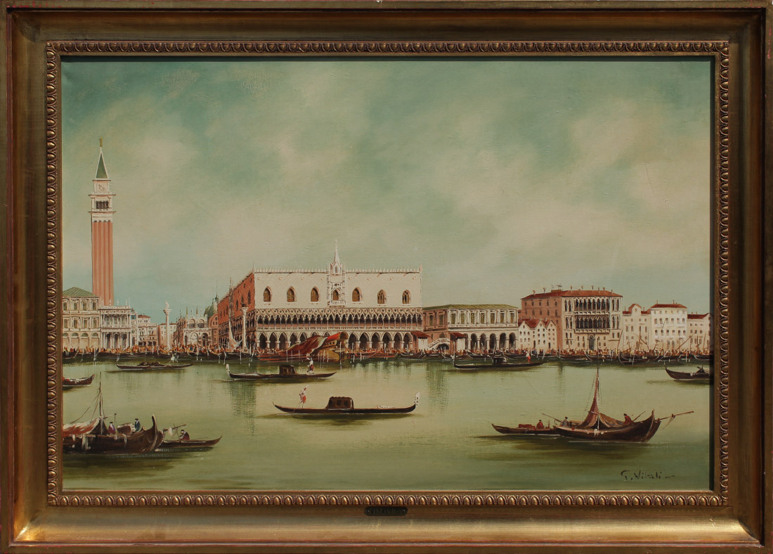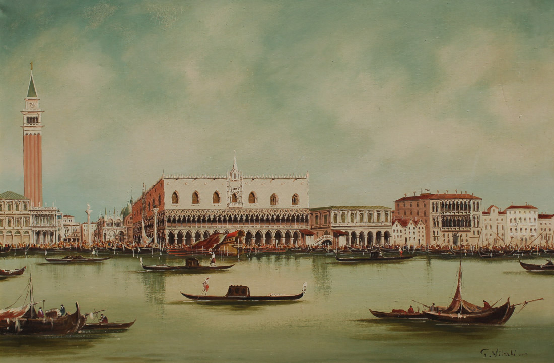 LARGE PAINTING BY VITALI OF SAINT MARK'S SQUARE, VENICE: Oil/Canvas, sight size 24'' x 36'', signed lower right, encased in carved and gilded frame, 29 1/2'' x 42''