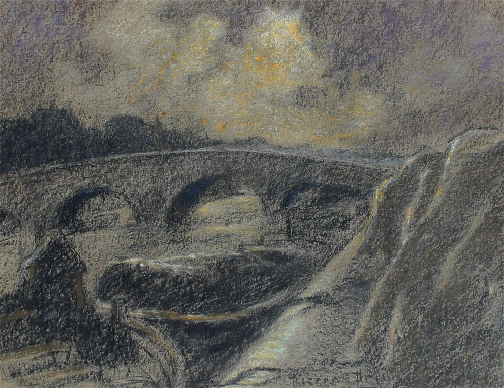 PRINS, Pierre, (1838-1913): ''Pont Sur La Seine'', Pastel, 10'' x 13'', signed lower right, gilded gesso frame, 17'' x 20''.