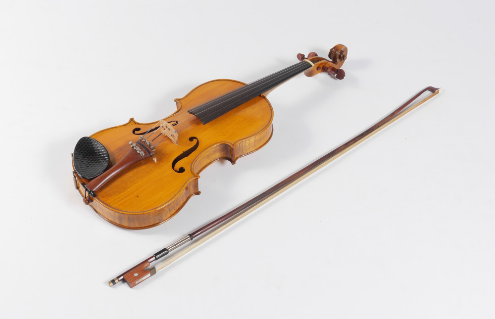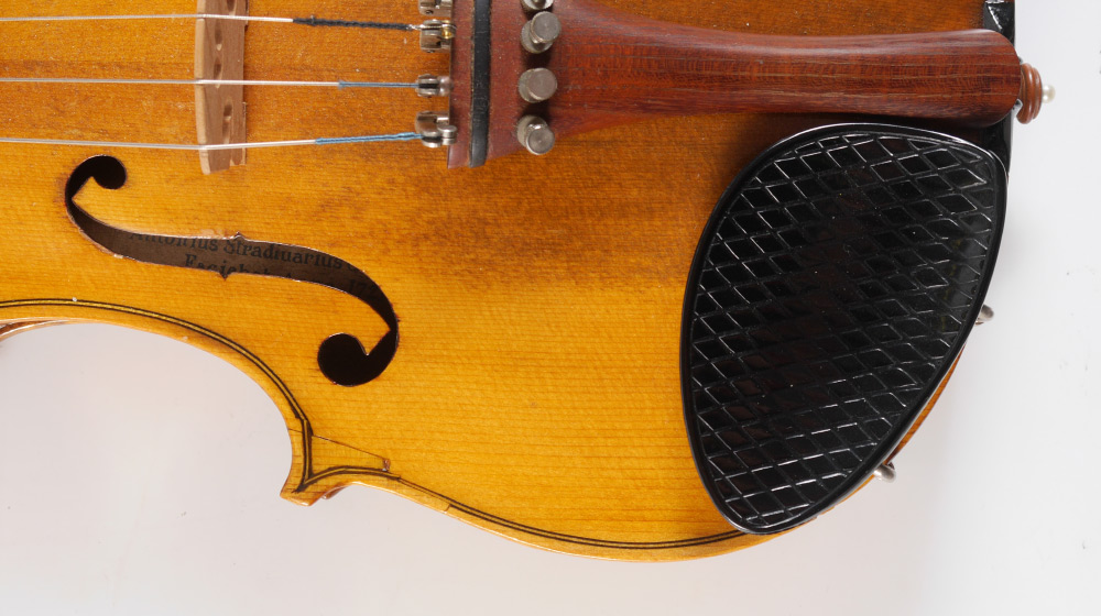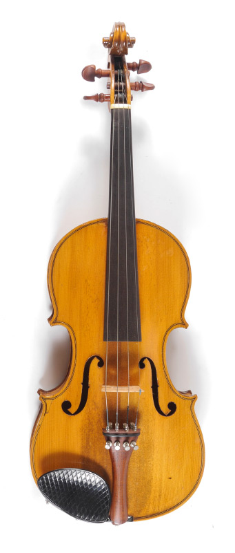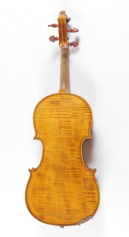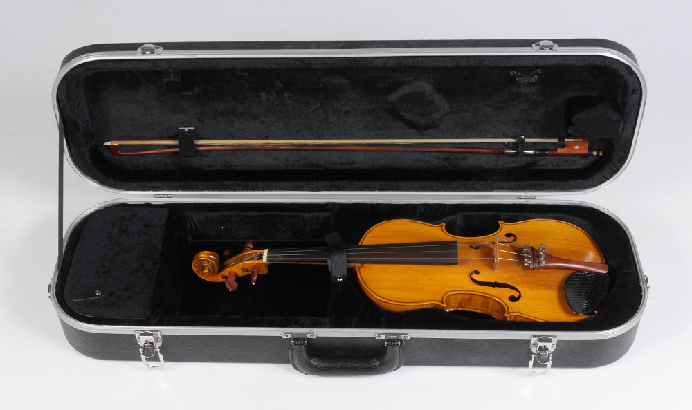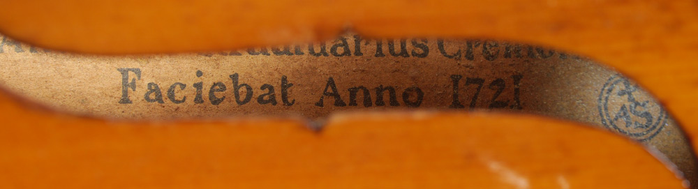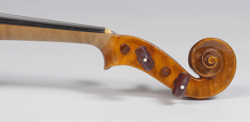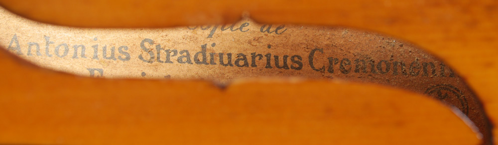 CONTINENTAL COPY OF A STRADIVARIUS VIOLIN: Early 20th century, labeled ''Copie De Antonius Stradiuarius (spelled wrong) Faciebat Anno 1721''. Single board 14'' back, overall 23 1/2''. Sold with an unmarked bow and hard case, 5 3/4'' h. x 32 1/2'' x 10 1/2''.