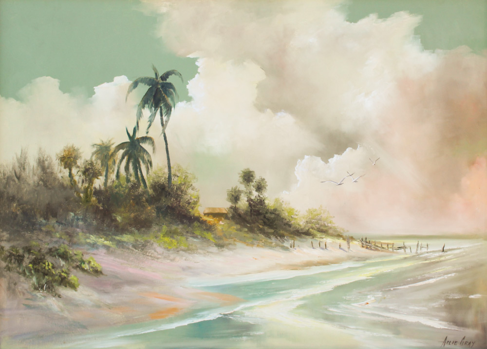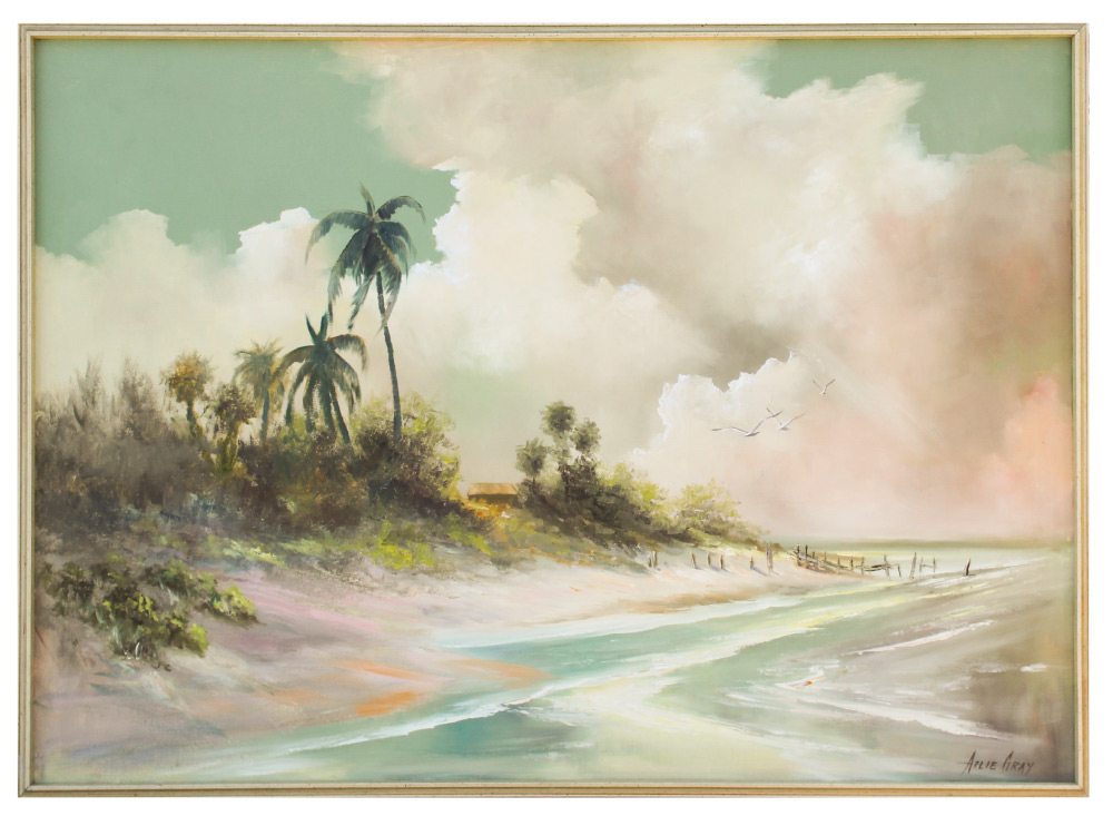 GRAY, Arlie, (American, 20th Century): Florida Coastal Beach Scene, Oil/Canvas, signed lower right, 35'' x 40'', framed 36 1/2'' x 51 1/2''.