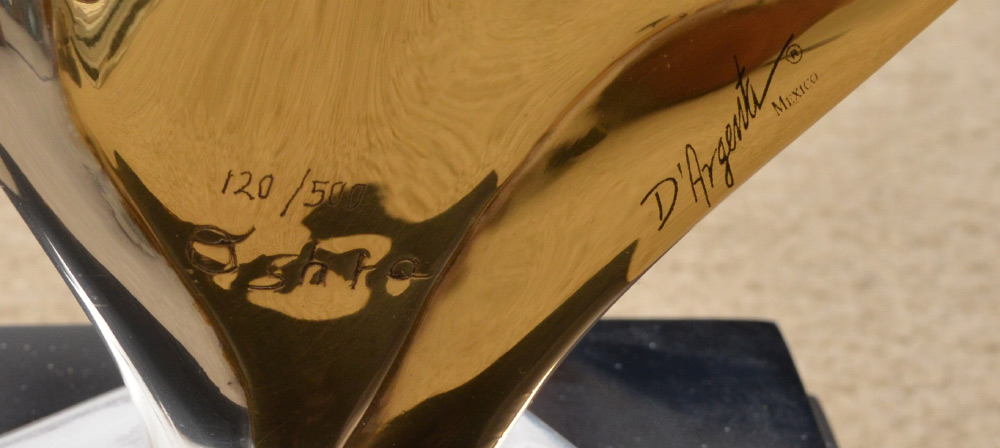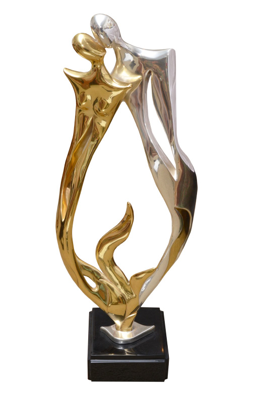 OSHRA D'ARGENTA ''FLAME'' SCULPTURE: Designed by Oshra for D'Argenta, titled ''Flame'', stylized mixed metal figures of man and woman, marked and numbered 120/500. Overall measures 25 1/2'' h. x 9 1/2'' x 6''. Currently retails on the D'Argenta website of $3,077.