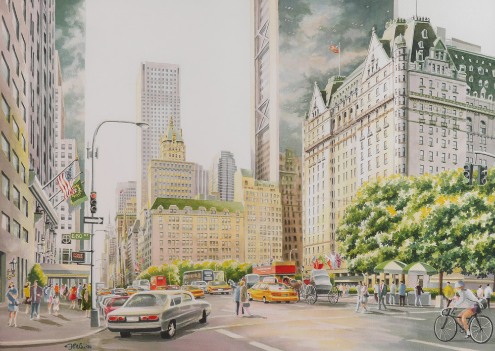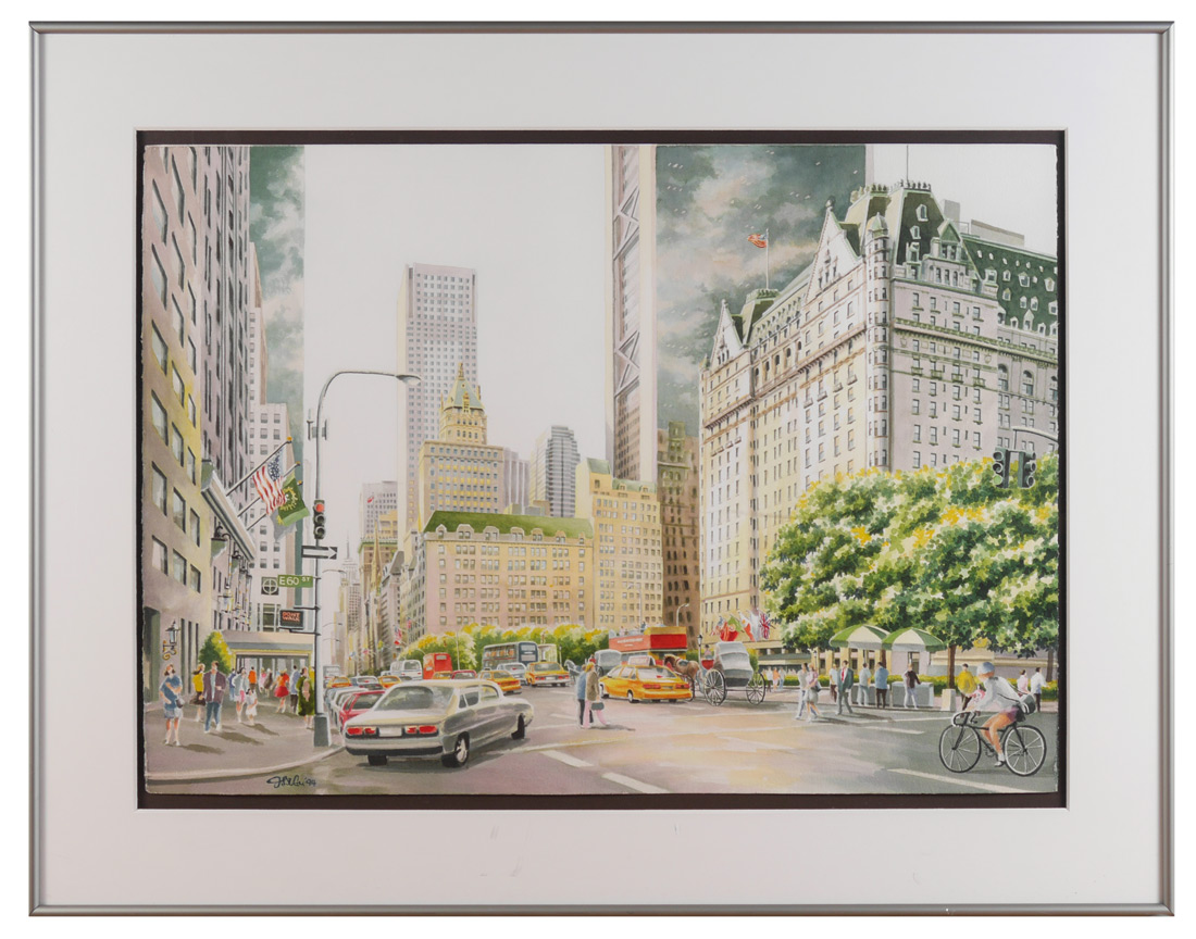 LEU, Michael (American, 20th-21st Century): New York City Street Scene, Watercolor, 30'' x 40'', signed lower left, dated '94, custom contemporary frame, 40.5'' x 51.5''. Commissioned art work, this was originally over $20,000.