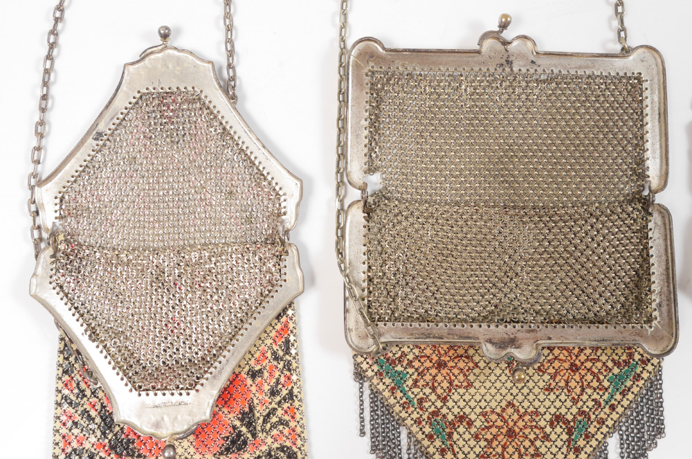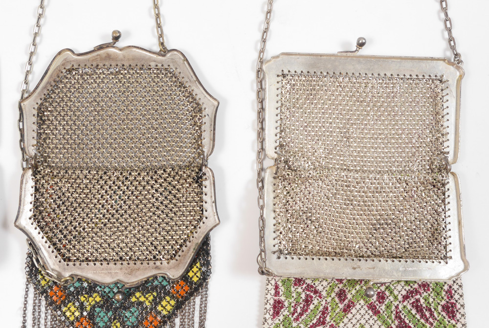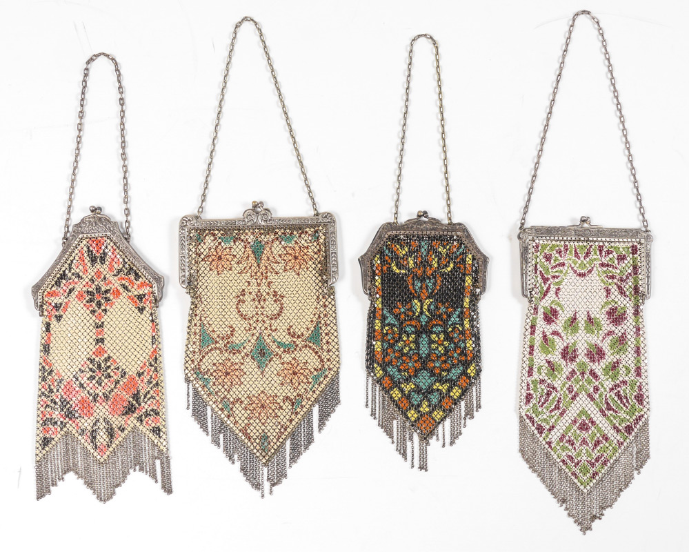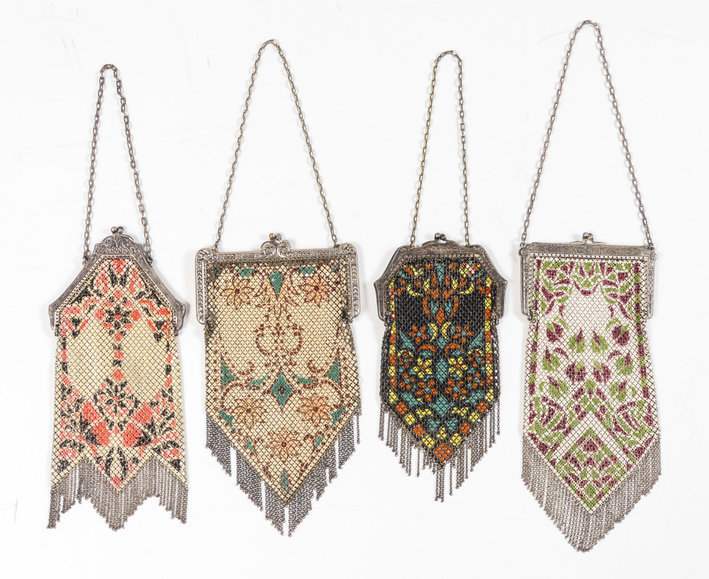 MANDALIAN MFG. CO. MESH PURSES: Group of 4 vintage enameled mesh purses, each signed Mandalian. Average 6'' x 4''.