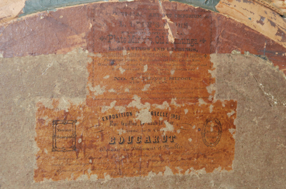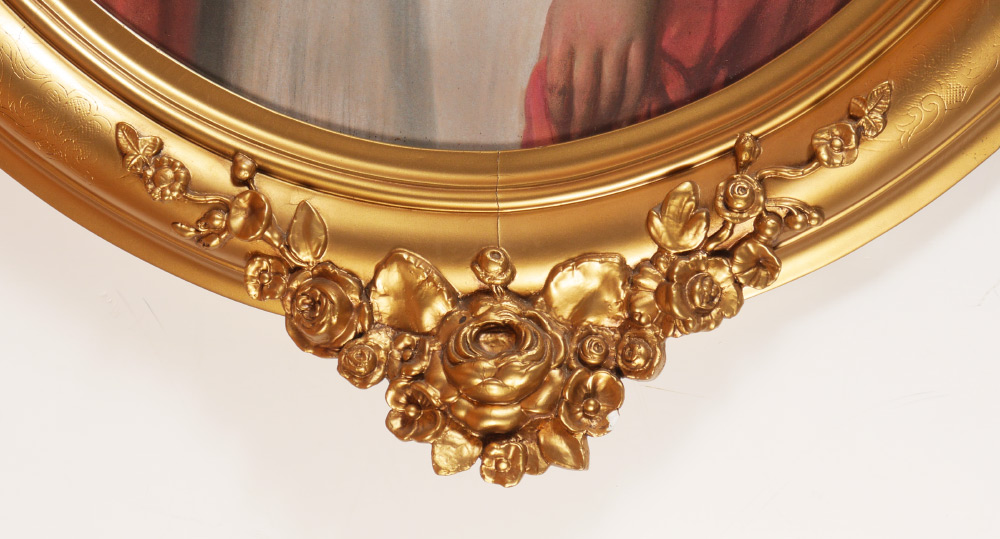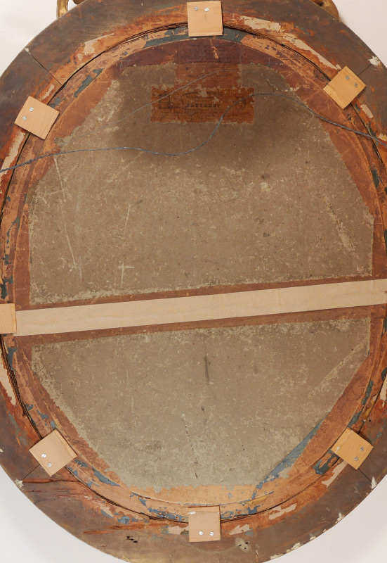 CONDITION: Not examined out of frame. Frame has been overpainted with gold paint, several visible cracks, small bit of missing gesso in lower portion of frame, sold as is.