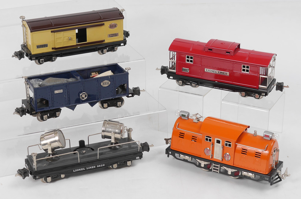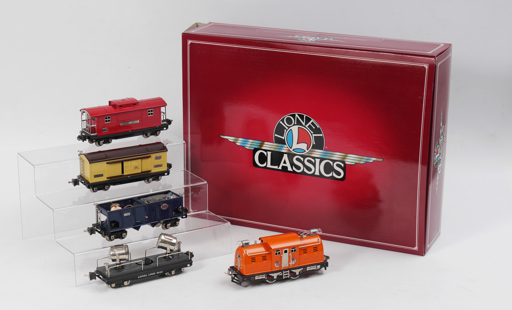 LIONEL CLASSICS #44 FREIGHT SPECIAL IN BOX: Lionel Classics 6-51001, #44 Freight Special set, 44E orange locomotive with 4 cars. In presentation box with plastic and shipping box. Box measures 7'' x 30'' x 21''.