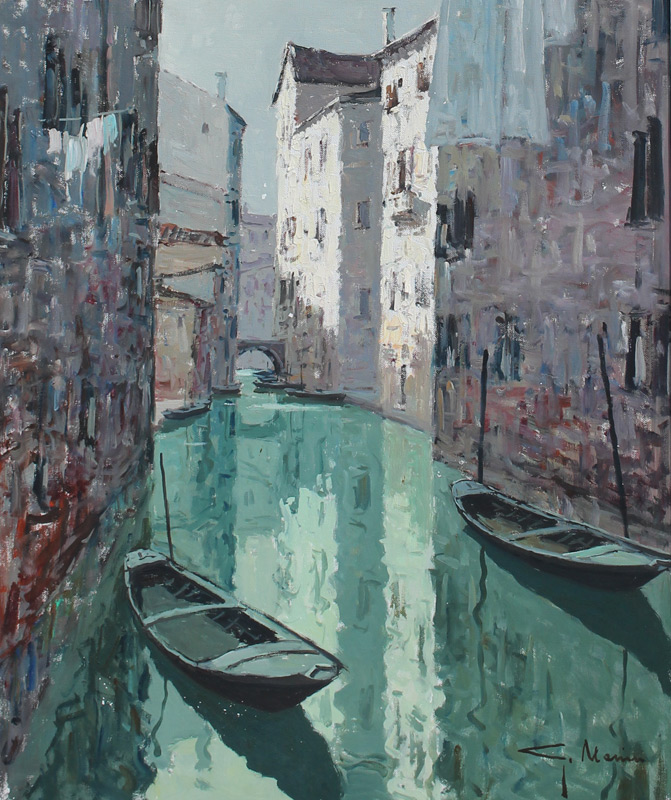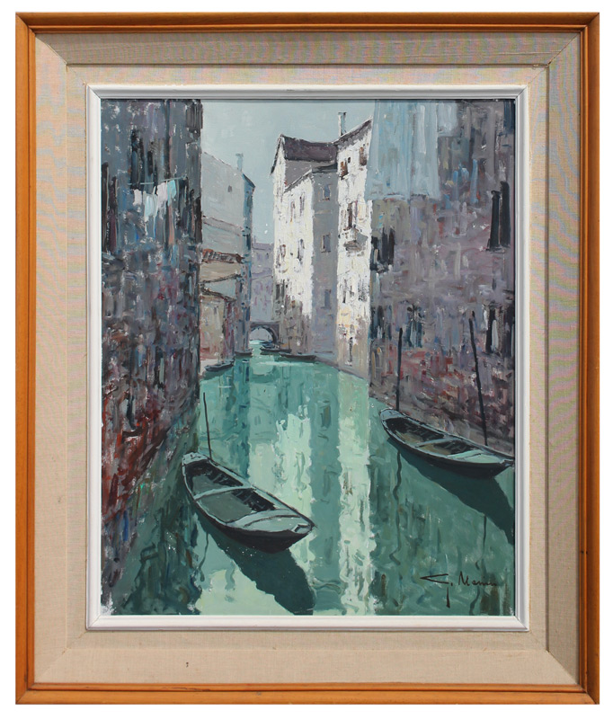 RIO SAN BOLDO VENICE PAINTING: Illegibly signed, Oil/Canvas, 23.5'' x 19.5'', signed lower right, titled verso, Florence Art Gallery on the stretcher verso, framed, 30'' x26.5''.
