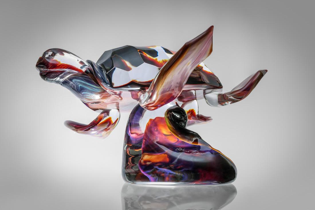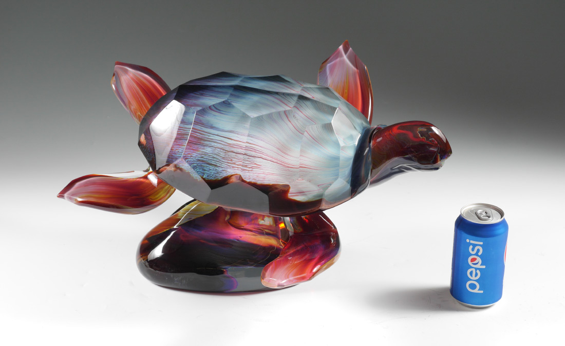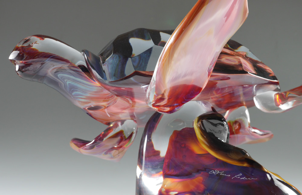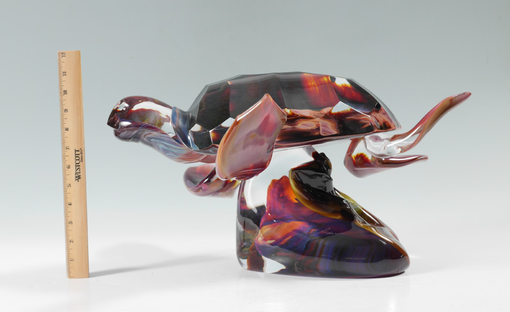 ROSIN, Dino, (Italian, 20th Century): Calcedonia glass sculpture of a sea turtle, signed on base, overall measures 10 1/2'' h. x 18'' x 19 1/2''. Sold with a book, DVD and copy of original sales receipt from Wyland Galleries in Key West for $10,500.