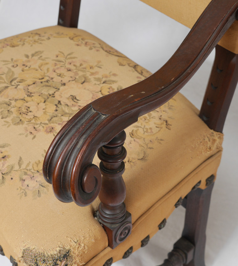 CONDITION: Structurally sound, in need of some cosmetic restoration, chairs in need of re-upholstery.