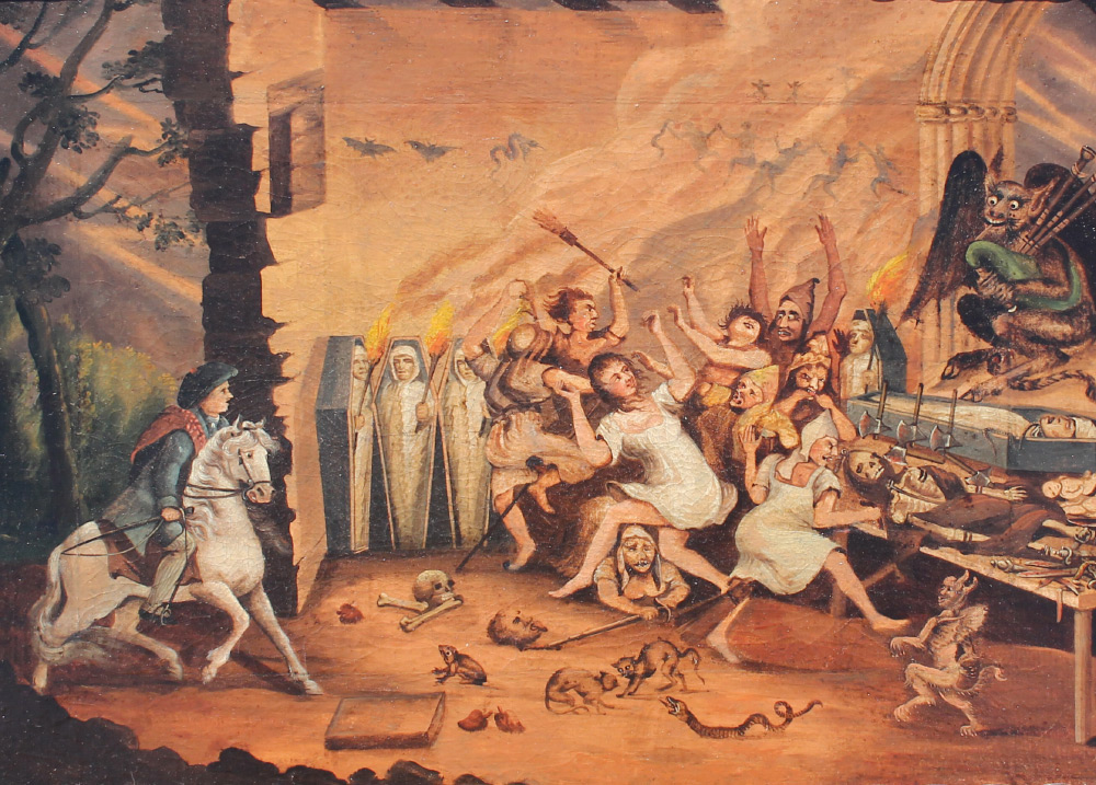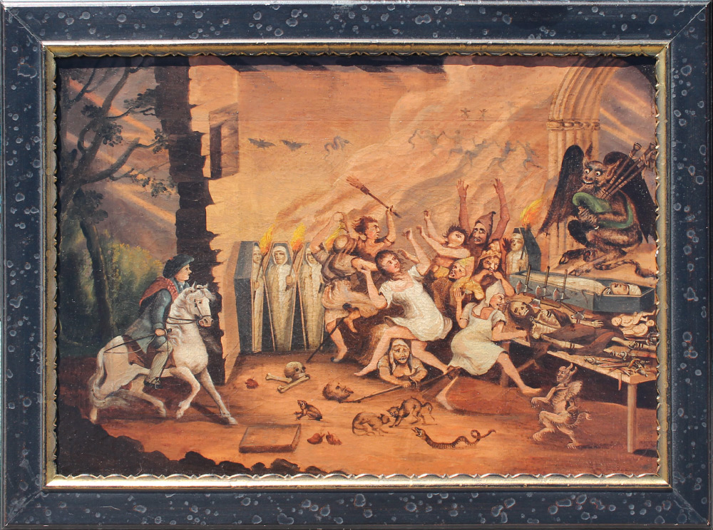 CIRCLE OF WILLIAM KIDD, (British, 1790-1863): Illustration for Robert Burns' Poem ''Tam O'Shanter'', Oil/Canvas, unsigned, 14'' x 20'', framed, 17.5'' x 23.5''.