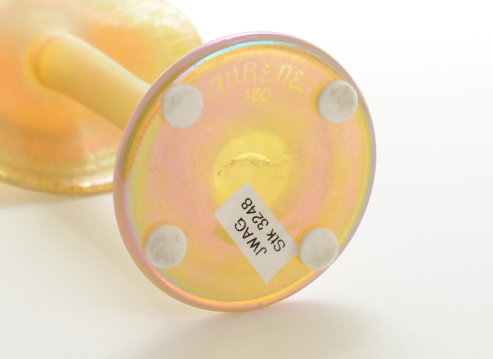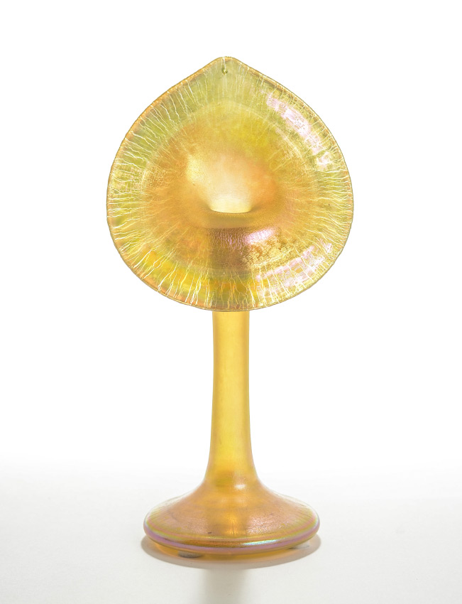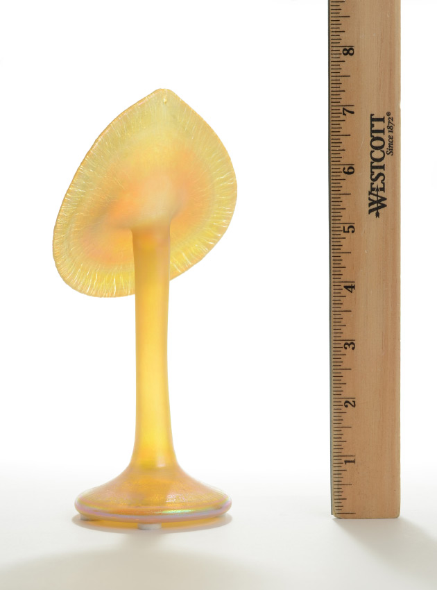 STEUBEN AURENE JACK IN THE PULPIT VASE: Diminutive vase, marked ''Aurene 130'' on base. 7 1/4'' h. x 3 3/4''.
