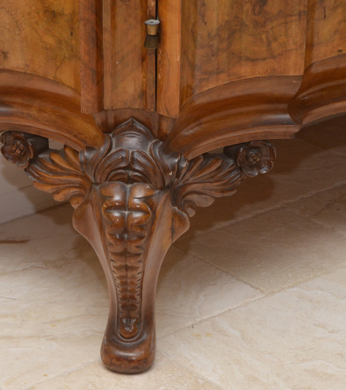CONDITION: At least 4 cracks and repairs to marble top with paint over, mirror with paint spatter, repairs to hinges on right door. Shippers note EXTREMELY HEAVY.
