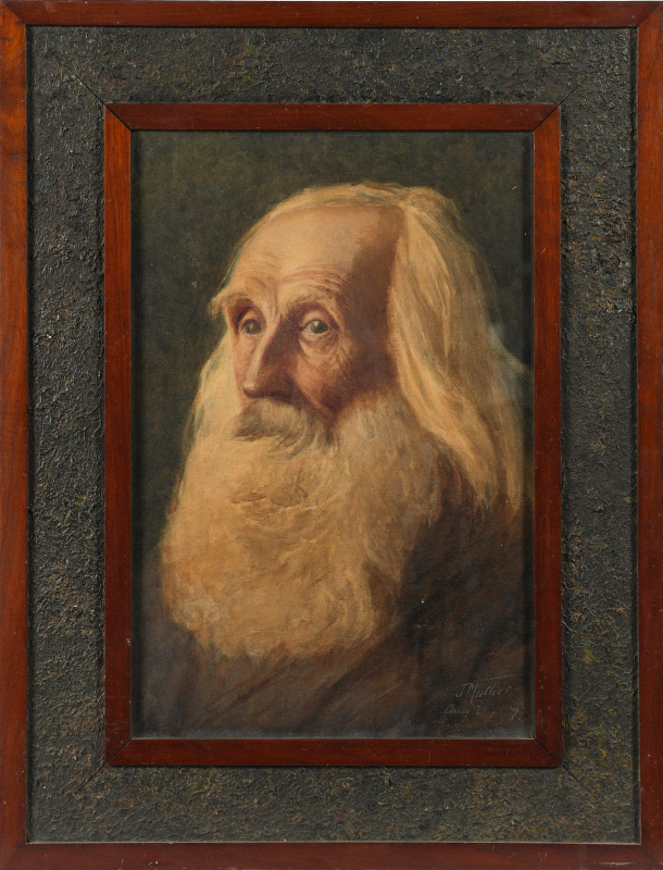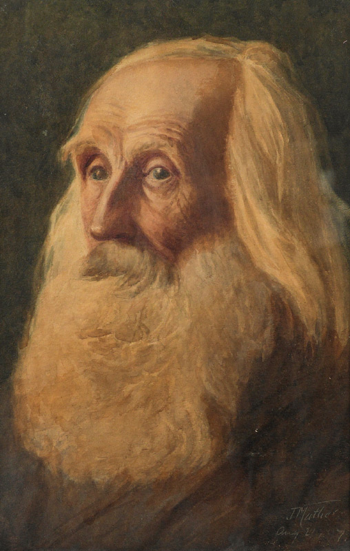 J MATHER? WATERCOLOR PORTRAIT PAINTING OF A BEARDED MAN: Sight size 7 3/8'' x 11 1/2'', signed lower right, framed, 25'' x 19''.
