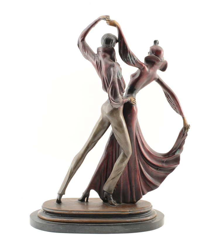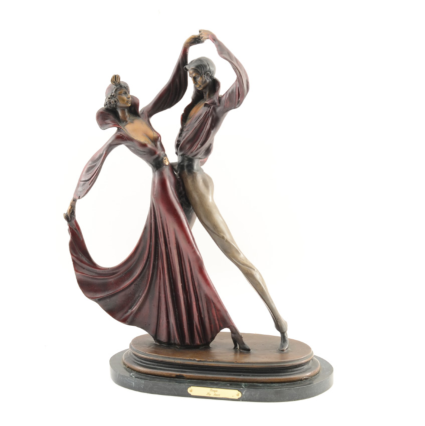 PATINATED BRONZE TANGO DANCERS AFTER ICART: Sculpture 19'' h., affixed to marble plinth, overall 22.5''h. x 15'' w. x 7''.