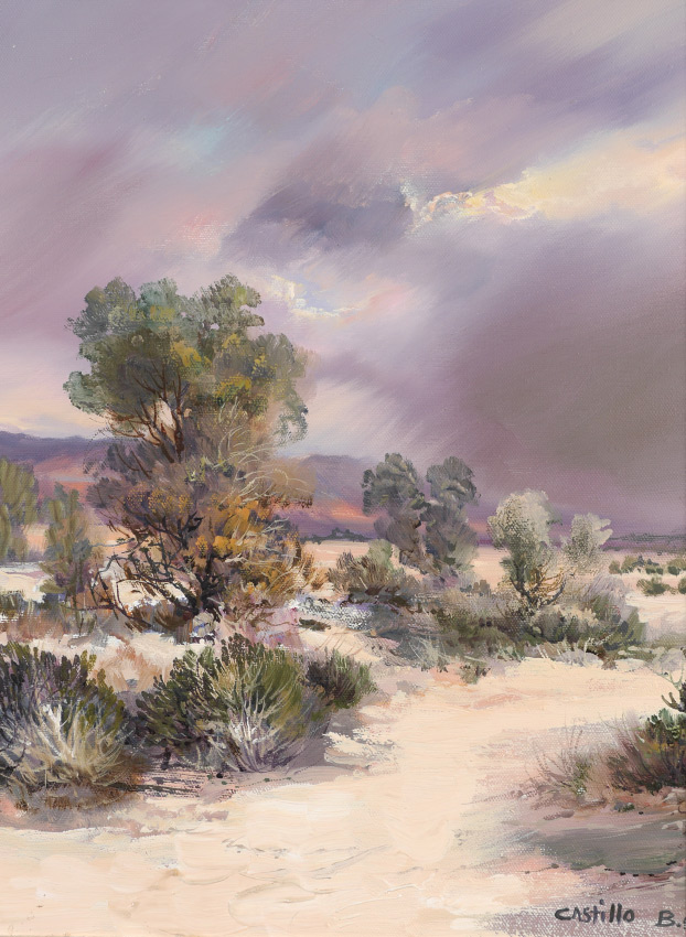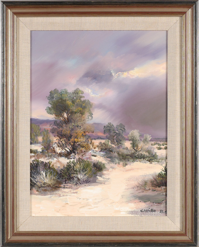 WESTERN LANDSCAPE WITH SCRUB SIGNED CASTILLO: Oil/Canvas, 16'' x 12'', signed lower right, framed, 20.5'' x 16.5''.