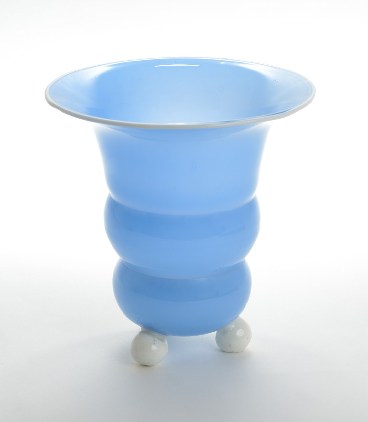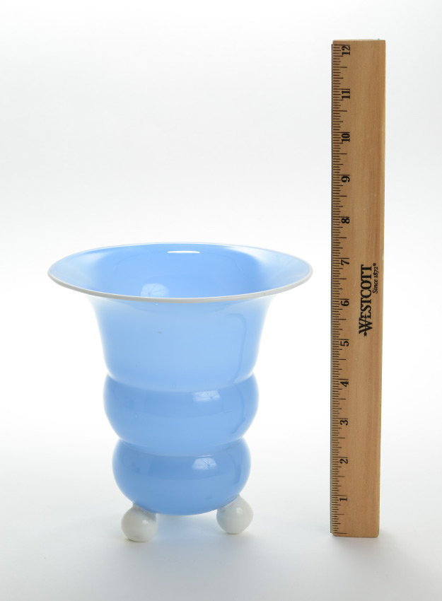 LOETZ TANGO ART GLASS VASE: Ausfuhrung vase, unmarked, light blue body with white rim and feet. 6 1/2'' h. x 6 3/8''.