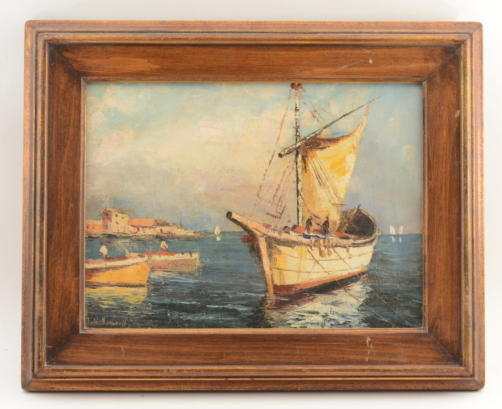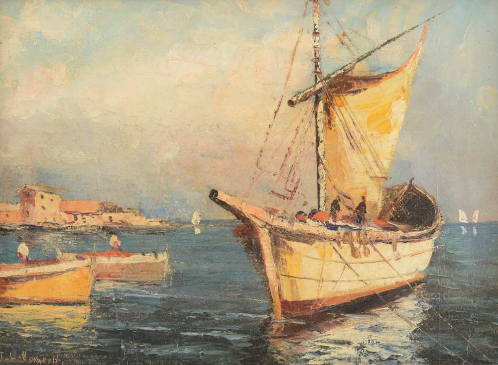 NOVARETTI, T.L., (Italian, 20th Century): Italian Fishing Boats, Oil/Canvas, 11.5'' x 15.5'', signed lower left and framed, 16.5'' x 20.75''.