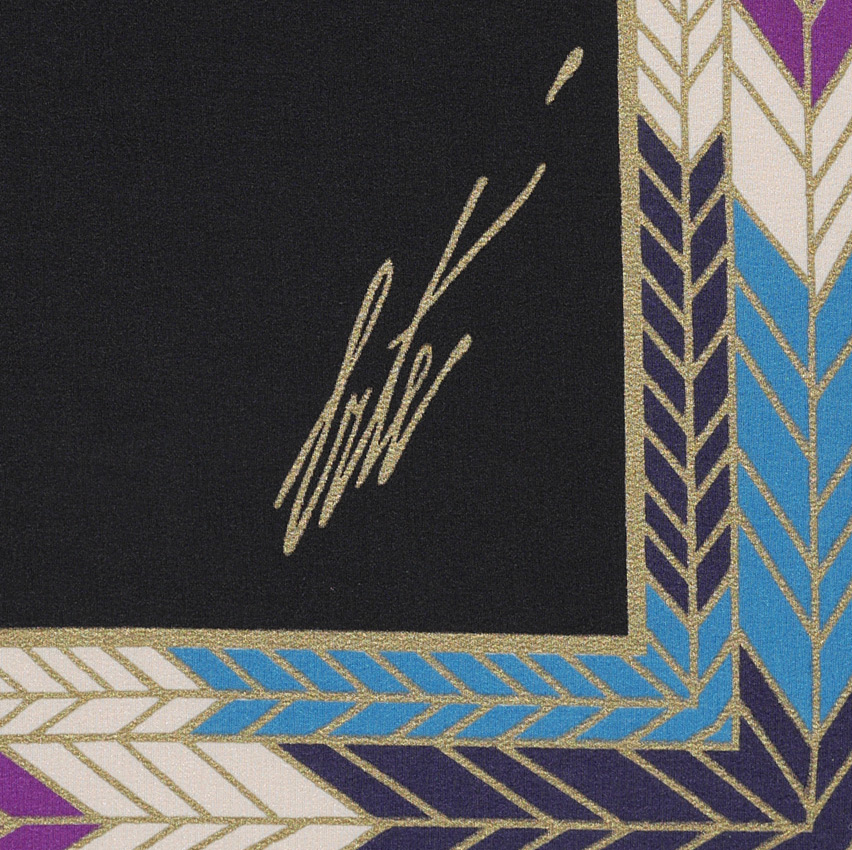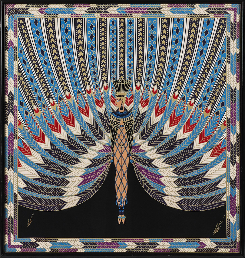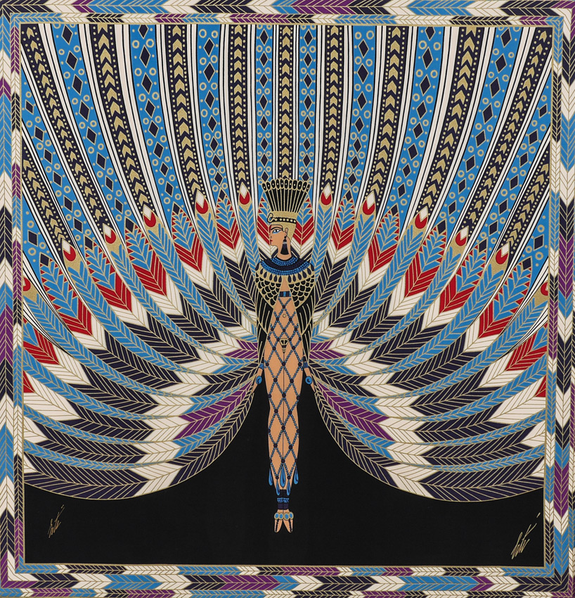 ERTE SIGNED SCARF ''THE NILE'': Contemporary black frame, overall measurements 35.5'' x 36.5''.