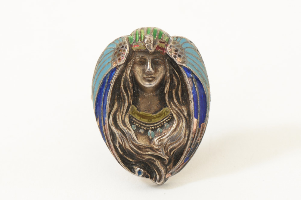 KREWE OF PROTEUS FAVOR PIN, ''CLEOPATRA'', 1903: Marked KOP 1903. ''Cleopatra'', reproduced in Henri Schindler's Mardi Gras Treasures; Jewelry of the Golden Age, Pelican Publishing Co, Gretna, 2006.