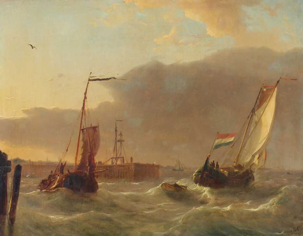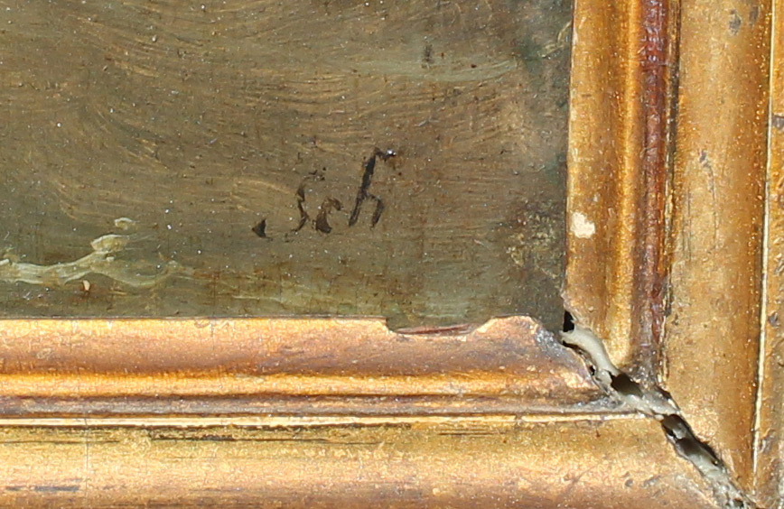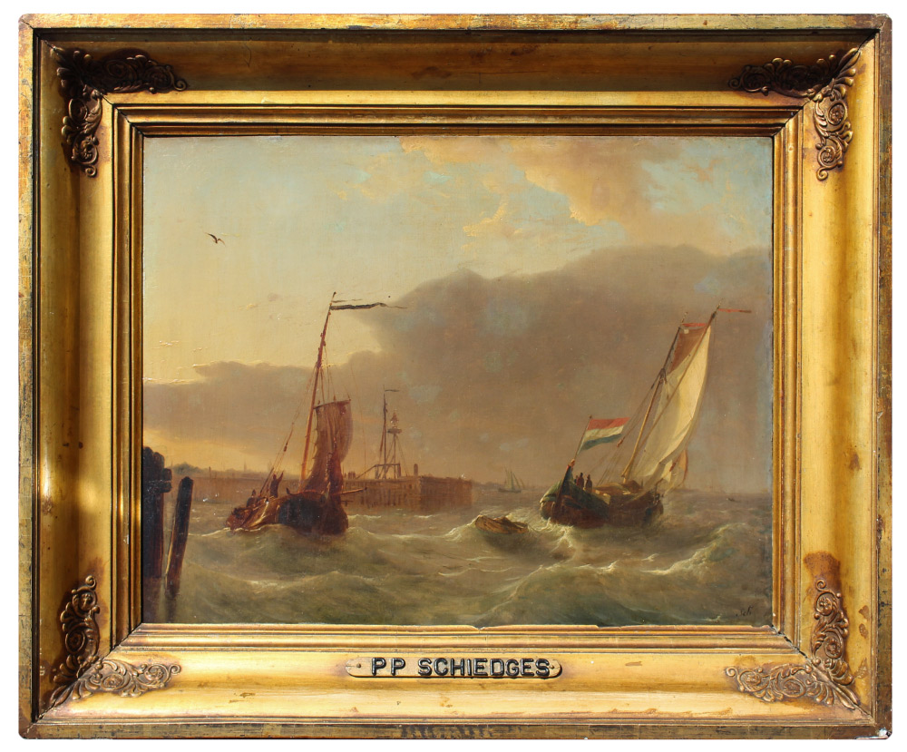 SCHIEDGES I, Petrus Paulus, (Dutch, 1813-76): Scene off the Coast of Cornwall with Approaching Clouds, Oil/Wood Panel, 14'' x 18'', signed and monogrammed lower right, gilded frame, 20'' x 20.5''.