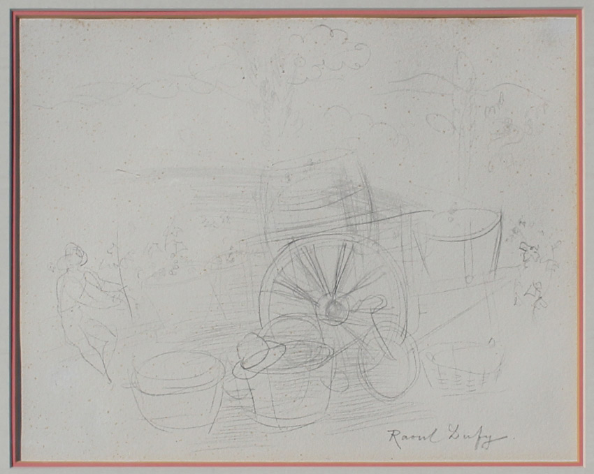 DUFY, Raoul, (French, 1877-1953), ''Grand Char de Raisins'', pencil drawing, 10'' x 13'', pencil signed lower right, custom frame, 23'' x 24.5''.