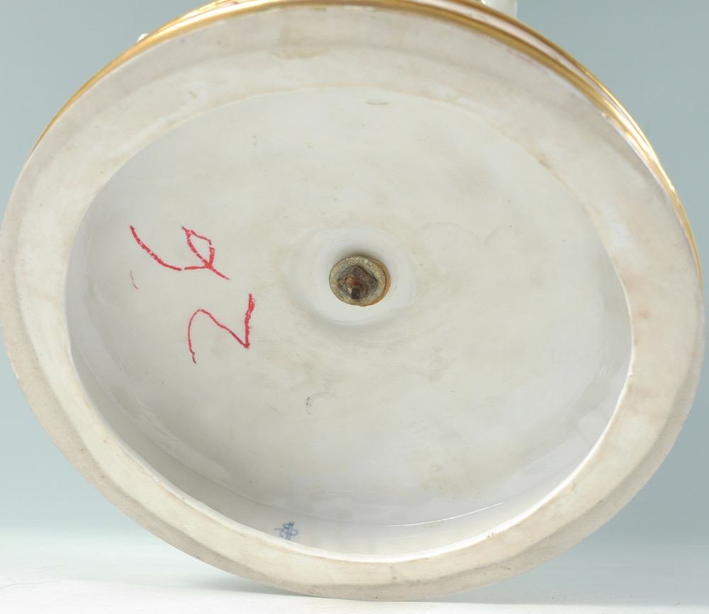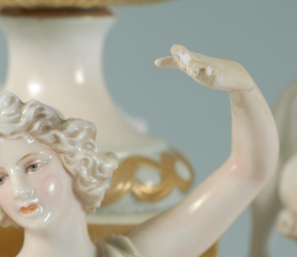 CONDITION: On figure missing fingers, another with repair to fingers, top bowl with looseness. Sold as-is.