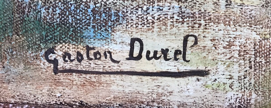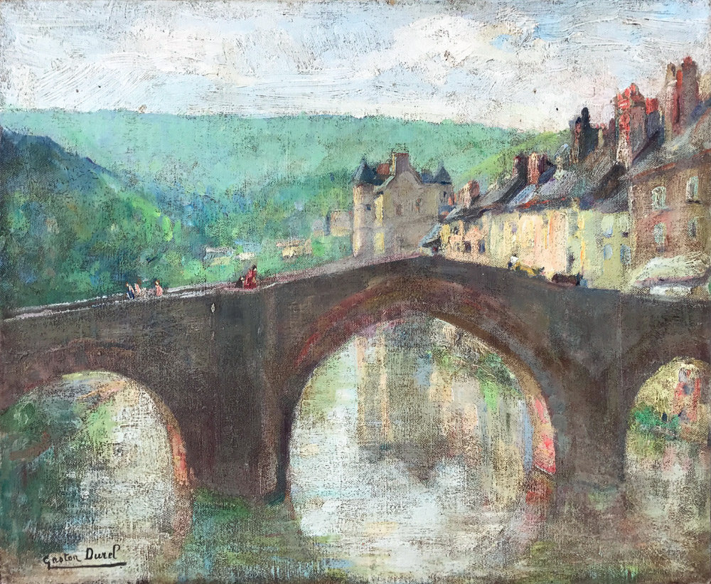DUREL, Gaston (French, 1879-1954): Village Scene with Bridge Crossing River, Oil/Canvas, 15'' x 18.125'', signed lower left, unframed.