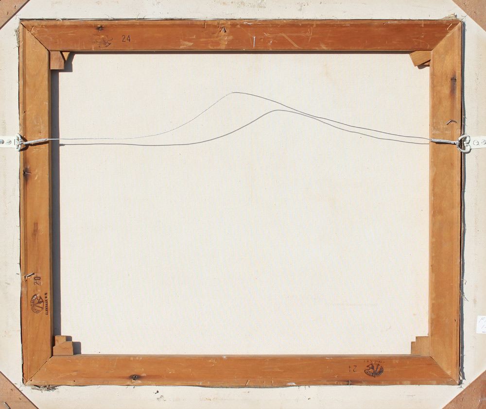 CONDITION: Relined, repair to puncture in upper portion of painting, sold as is.