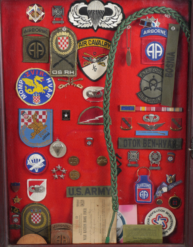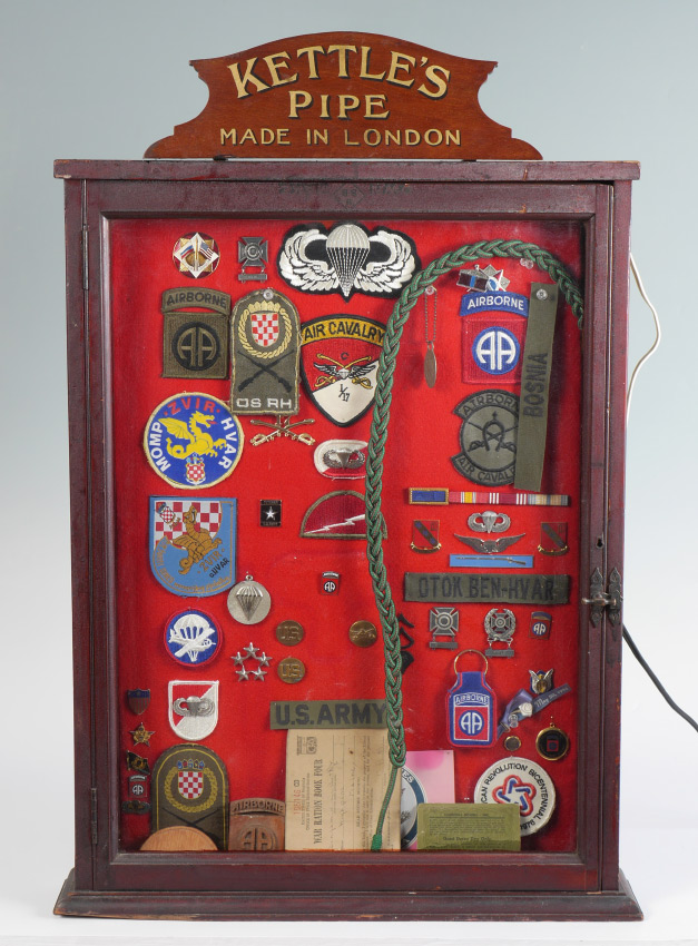 OTOK BEN-HVAR COLLECTION OF MILITARY MEDALS: A collection of military medals and patches from Otok Ben-Hvar's military career. Affixed to felt lined board in a Kettle's Pipe illuminated display case, 31 1/2'' x 20'' x 3 1/2''. Provenance: Ben Garcia (Otok Ben-Hvar), Estate