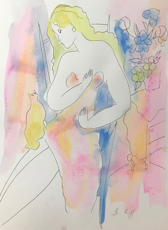 LE KNIFF, Linda (French, 1949-): ''Beautiful'', Pen and Ink with Watercolor, 20'' x 16.5'', pencil signed lower right, unframed