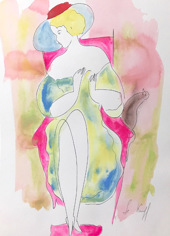 LE KNIFF, Linda (French, 1949-): ''Delicate'', Pen and Ink with Watercolor, 19.75'' x 16.5'', pencil signed lower right, unframed.