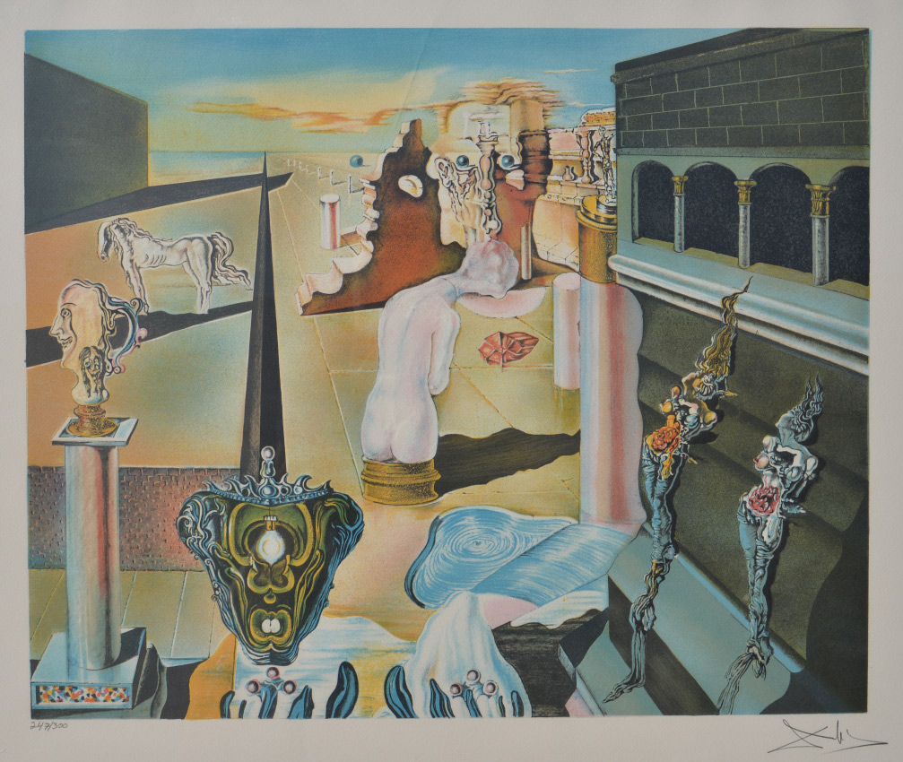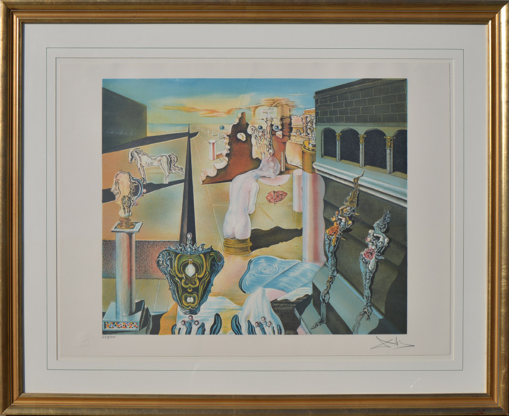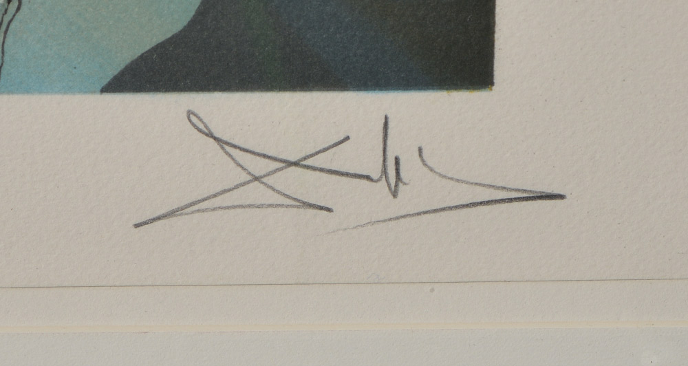 INVISIBLE MAN LITHOGRAPH AFTER SALVADOR DALI: 21'' x 29.75'', pencil signed lower right, numbered 247/300 lower left, Salvador Dali blind stamp lower left corner. Float mounted in custom frame 30.75'' x 38.5''.