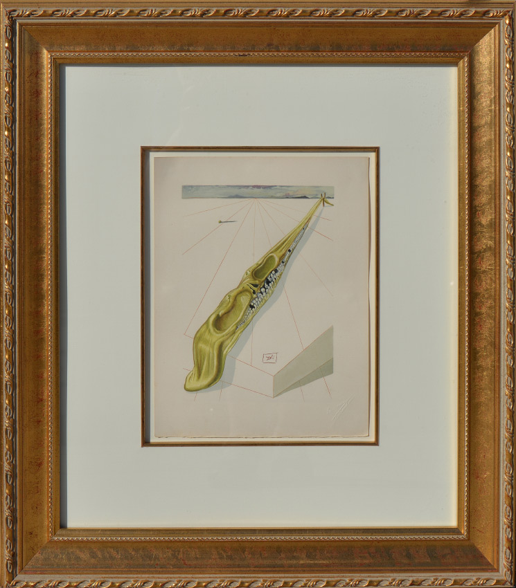 SALVADOR DALI DIVINE COMEDY WOOD ENGRAVING PURGATORY CANTO #14: 13'' x 10.25'', signed in the plate, blind stamp lower right, framed, 27.25'' x 24.5''.