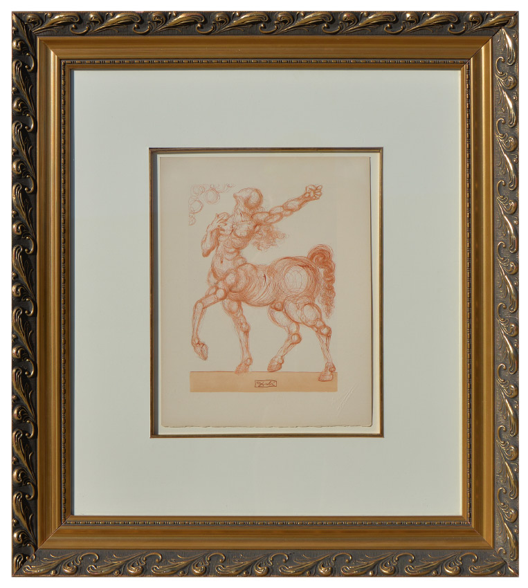 SALVADOR DALI DIVINE COMEDY WOOD ENGRAVING HELL CANTO #26: 13'' x 10.25'', signed in the plate lower margin, blind stamp lower right, framed, 26.75'' x 24.25''