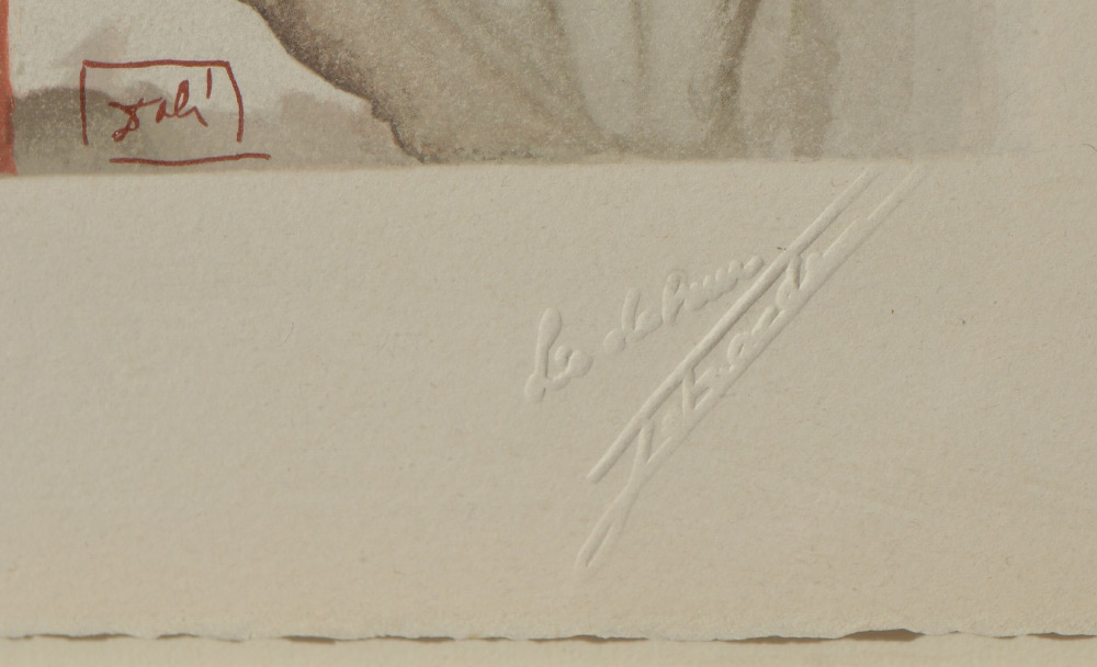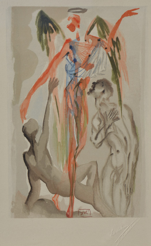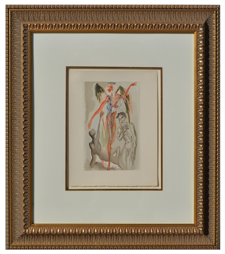 SALVADOR DALI DIVINE COMEDY WOOD ENGRAVING PURGATORY CANTO #31: 13'' x 10.25'', signed in the plate lower margin, blind stamp lower right, framed, 28'' x 25.5''.
