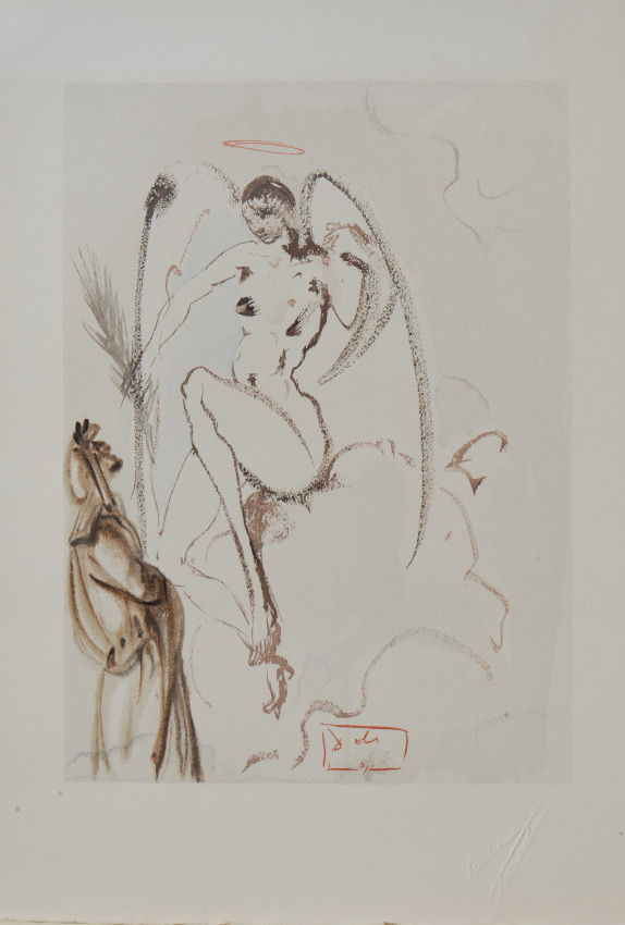 SALVADOR DALI DIVINE COMEDY WOOD ENGRAVING HEAVEN CANTO #28: Sight size 13'' x 10.25'', signed in the plate lower mid-margin, blind stamp lower right, framed, 26.5'' x 23.5''.