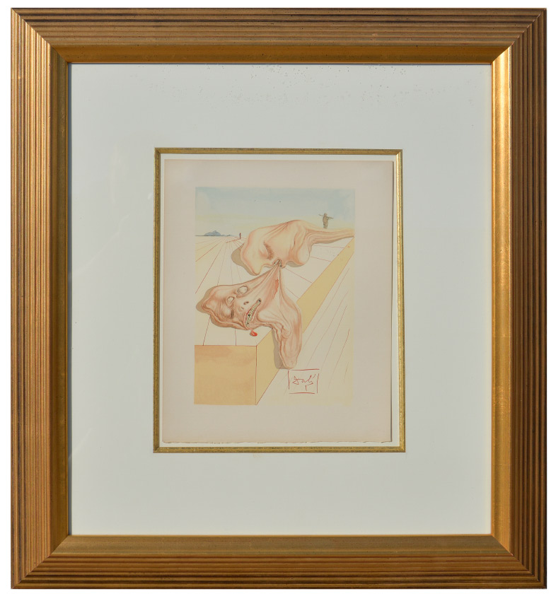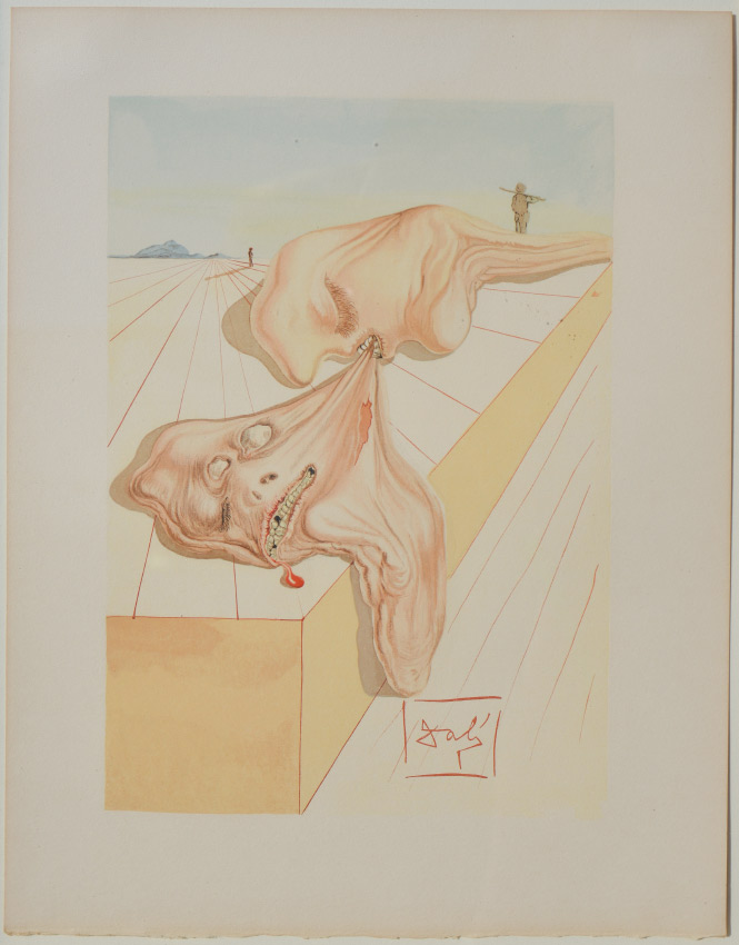 SALVADOR DALI DIVINE COMEDY WOOD ENGRAVING HELL CANTO #30: Sight size 13'' x 10.25'', signed in the plate lower mid-margin, framed, 28.5'' x 24''.