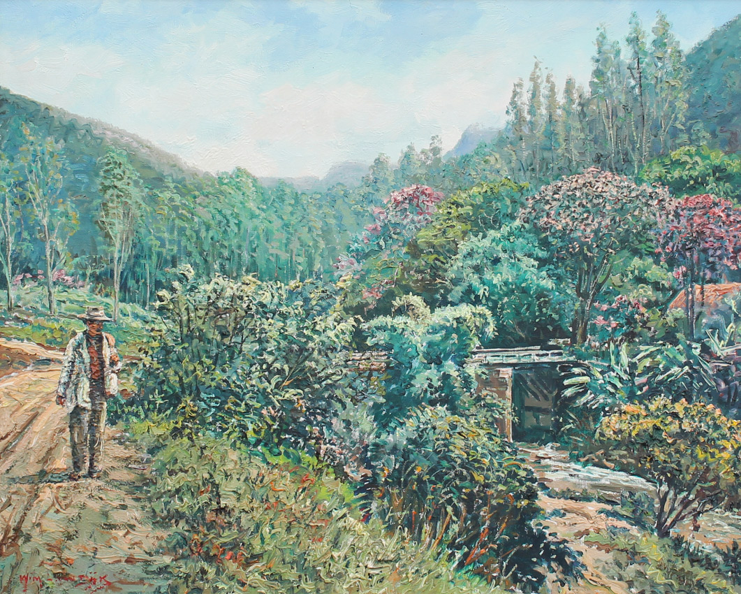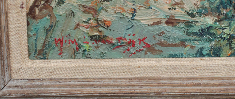 VAN DIJK, William, (American, 1915-1990): Impressionist Landscape with Figure Walking Along a Trail next to Steam, Oil/Canvas, 25.5'' x 31.5'', signed lower left and signed verso, framed, 34'' x 40''.